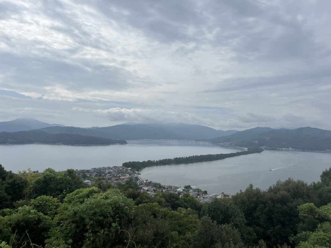 朝から車で天橋立へ。まずは「傘松公園」に登って有名な**“